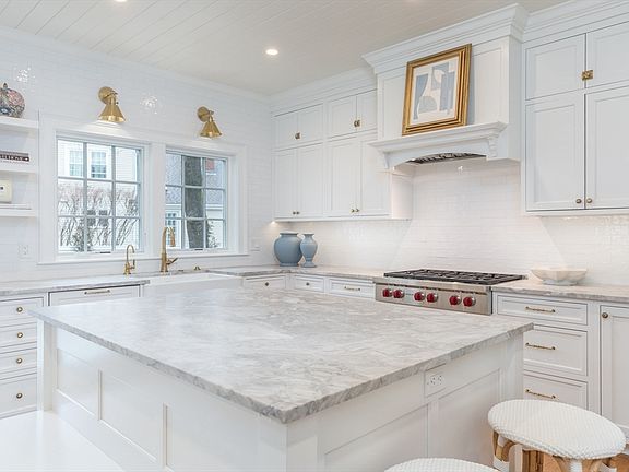 Stunning custom-built designer home completed in 2023. This gorgeous 5+ bed, 4.5 bath is truly one of a kind. Set on a quiet family-friendly street in the Bates district, 34 Chesterton showcases timeless architectural details, beautiful millwork and top of the line finishes throughout. The first floor offers a welcoming open concept floorpan with beautiful rear-facing sun room and gourmet kitchen outfitted w/ brass fixtures, custom cabinetry, Wolf/Sub-zero appliances and honed quartzite counters. Spacious corner library/home office, powder room + mudroom with walk-in pantry complete this floor. Upstairs offers 3 equally large guest bedrooms, 2 playfully designed bathrooms, 1 full-size laundry room and stunning primary suite with walk-in closet + marble bath. Fully finished lower level offers 5th bed + full bath as well as large second entertaining area and playroom. Additional features include private blue stone patio, 2 car garage and fully fenced yard with secure gated driveway.