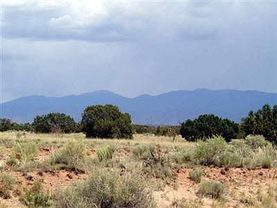 Well located lot with solar and views of all mountains. For this area it is a very level lot. Horses (4) are allowed. BLM riding out land is adjacent to the subdivision and national forest from there. Gravel roads, tennis court, manned and un-manned security gate, across from Las Campanas if you want to add a membership there. Approx $1,800 annual HOA dues - Sellers may consider a trade with the lot as part of the purchase of a house in this part of the county.