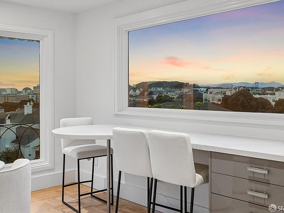 An SF home that does not come around often. Perfect pied--terre to pass down through generations, or serve as an amazing starter HOME for those who cannot afford a single family in Laurel Village/Presidio Heights, but still want the benefits of one! TOP FLOOR sanctuary detached on 3 sides, boasting nearly 1700sqft of generous proportions. Chef's Dream Kitchen w/a View: No expense was spared on this entertainer's space. Sprawling kitchen features top-of-the-line appliances + custom, optimized cabinetry, designed for hosting unforgettable gatherings. A View That Never Ends: Ever changing masterpiece from the wrap-around windows- from sunsets over Ocean Beach to the twinkling towers of the GG Bridge. Quiet back BRs w/ custom closets do not share a wall for addt'l privacy, one en-suite. Peaceful backyard space. Independent garage w/ EV charger, 2nd car in driveway. Secured storage, private w/d. Quiet tree lined street ends into Laurel Village- very few cars ever drive by. Steps from vibrant energy + convenience of Laurel Village/Sacramento Street's renowned fine dining, high-design boutiques, artisan coffee + gourmet grocers. Get out on Presidio's trails or sport courts or enjoy views from your massive windows on rainy days + cozy up to the f/p. Your lifestyle is instantly upgraded.