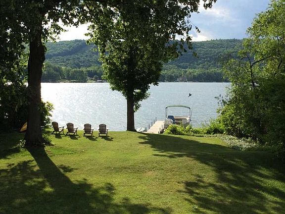 Direct lakefront year round cottage. Very nice inside. Flat lawn to the lake. Dock! Why buy lakeview in the Southern basin when you can direct lakefront for less. Town sewer and water. Year round access.