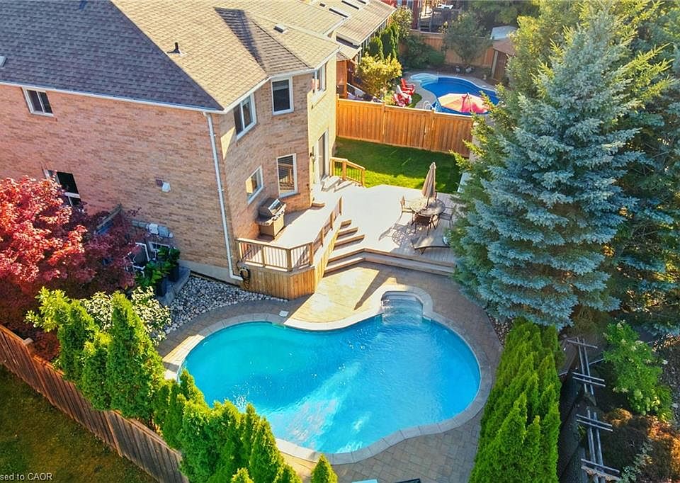 Stunning, fully updated executive detached home in a highly sought-after neighbourhood, offering the perfect balance of elegance, comfort and family living. Bright and open living spaces make it easy to spend time together, while still offering room to spread out. The heart of the home is the fabulous renovated kitchen, complete with a large centre island and plenty of space for gathering — ideal for both everyday family meals and entertaining. The open-concept design flows seamlessly into the bright family room with a gas fireplace. Upstairs, the large primary bedroom offers two walk-in closets and a spa-like bathroom. Three other generously sized bedrooms provide ample space for the whole family. The finished basement with additional bathroom adds even more space for recreation, a home office, or movie nights. Complete with built-in sauna! Step outside to a private backyard designed for fun and relaxation, with an inground pool, cabana bar and peaceful ravine views — perfect for summer days and weekend get-togethers. Located in a high-demand community close to top-rated schools, parks, trails, and all amenities, this home is a rare opportunity to own a move-in ready property with premium finishes and a one-of-a-kind setting. Kitchen and main floor renovation - 2019. New staircase from main floor to second floor - 2013. Hardwood floor upstairs - 2013. Primary bathroom renovation - 2019. Second upstairs bathroom - 2020. Basement and basement bathroom - 2023. Mechanics: Furnace and A/C - 2018. New water softener - 2024. Exterior: Pool - 2011Composite decking with cedar trim - 2011. Roof - 2015. New Pool Heater - 2025.