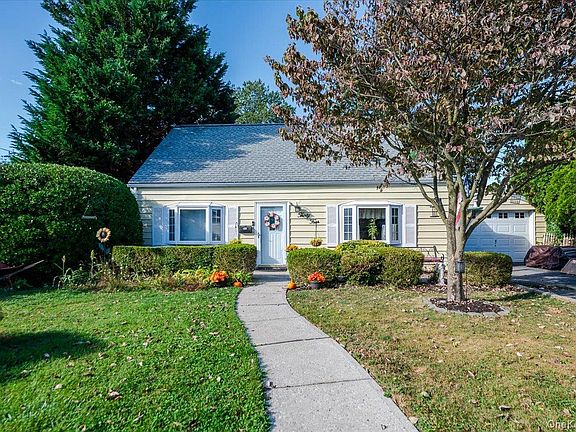 Welcome home to a must see charming 3-bedroom, 1-bath Cape-style home, white picket fence and all. In the desirable Levittown/Wantagh border. Nestled on a quiet, streetlamp-lit block with no through traffic, this home is perfect for seeking tranquility and convenience. Its prime location offers easy access to public transportation, major highways, and top-rated schools. The well maintained landscaped, fully fenced backyard with mature trees is ideal for BBQs, playtime, or relaxing evenings. A double-wide driveway leads to a detached insulated garage with a full-length attic, perfect for storage and hobbies. The kitchen features a Cuisinart oven, wall-mounted microwave, and new refrigerator and stovetop, complemented by a recently updated washer and dryer. Two large sheds provide ample storage, and a young roof ensures lasting durability. Enjoy year-round outdoor comfort with a new full-sized overhead propane heater. With modern upgrades and timeless appeal, 34 Curve Lane is a must-see opportunity. Schedule your showing today!