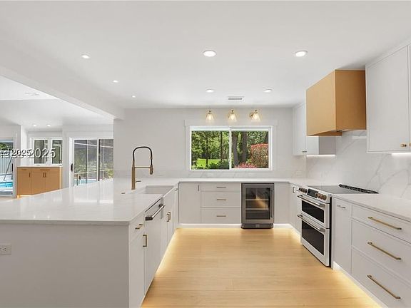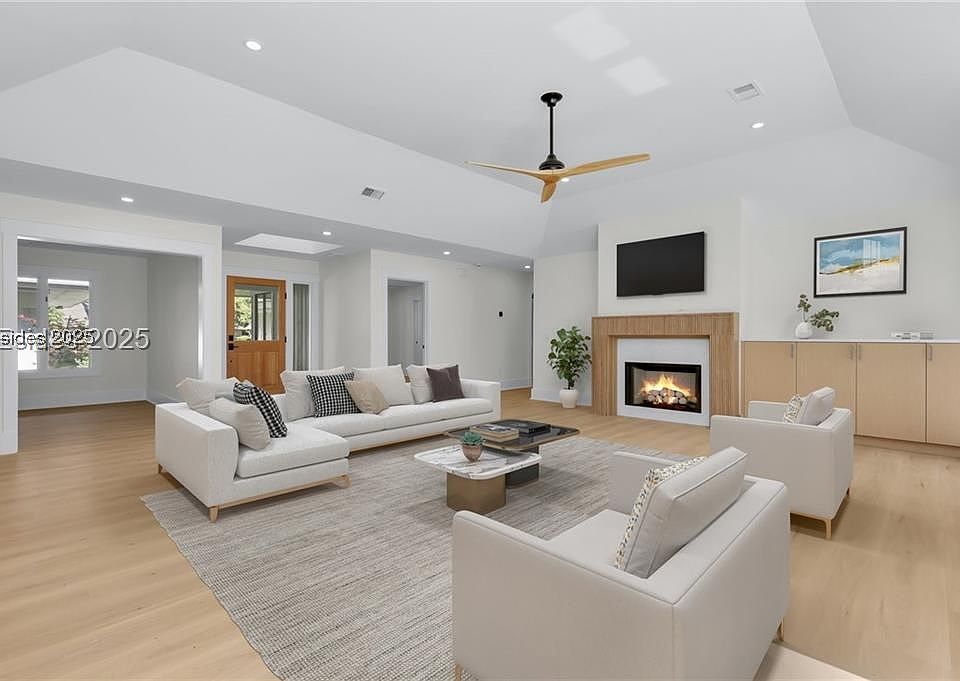 Exquisitely renovated with elegant appointments and elevated finishes, this Hilton Head Plantation home offers the best of island living in 2,623 square feet of sophistication with views out to the third green at Bear Creek Golf Club.This golf scenery entrances through wooded sightlines that provide incredible privacy to the back yards opulent outdoor spaces. Completely screened in for year-round enjoyment, the resort-style swimming pool sparkles beneath the shade of a high tree canopy. Encircling the home, a wide patio allows plenty of room for outdoor dining, grilling and entertaining while gazing out on the course.Within the home, renovations have lent an atmosphere of modern coastal flair to a gorgeous layout that puts a premium on lush natural light and open airiness. In the great room at the heart of the home, wide-plank hardwood flooring runs from custom built-in cabinetry and a wide gas fireplace at one end and into the gourmet kitchen. In between, a custom-built dry bar looks out on the outdoor living spaces.Beautifully opened to the main living space for effortless entertaining, the kitchen is a hosts dream, with its wide center island, plentiful counterspace, flat cooktop range beneath range hood, beverage fridge, panel refrigerator and expansive back kitchen in the nearby laundry room. And throughout, the space looks as well as it cooks, with marbled granite backsplashes and brushed metallic hardware that cut a modern profile.The single-story layout of the home spirals away from the main living spaces into quieter, more intimate corners for relaxation. A spacious office can also serve as a flex space, while a pair of bedrooms each enjoy spacious closets and full baths. The primary suite is a getaway unto itself, with its soaring tray ceiling guiding the eye toward private access to the screened lanai. At the far end of this generously sized suite, modern style and spaciousness combine for an en suite bath that could serve as a personal spa getaway. A massive walk-in shower with custom stone work and dual wall-mounted vanities exult in modern stye while indulging with sheer comfort. With golf living just around the bend and inspired renovations that create an atmosphere of modern sophistication, this property represents your chance to live the Hilton Head Island lifestyle of your dreams.