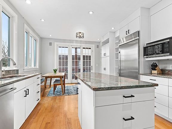 At nearly 1400 SF, this elegant, sophisticated Victorian condominium in the heart of Brookline Village is set amidst beloved Emerson Garden Park & Longwood Medical Campus. Well-appointed, the sunlit layout spans continuously w/ high ceilings, light exposure from every direction, gleaming hardwood floors, period crown moldings, Cent. A/C, in-unit W/D, and beautiful center-hall. The formal living & dining rooms flow effortlessly, grand in scale yet intimate in character, complimented by custom cabinetry & electric fireplace. Both bedrooms are well balanced retreats; the primary is outfitted by California Closets & a built-in bed. The 1.5 Baths are cleverly designed & thoughtfully renovated. The fully-equipped kitchen is a Chef’s delight, with family-style dining, large pantry, and a wall of windows & glass doors with easy access to the private deck for al fresco dining. 100% owner-occupied, this 3-unit Pet-Friendly Assoc offers parking, common patio & garden, plus private storage in Bsmt