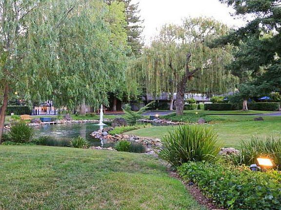 Nestled in a prime, quiet location in the coveted Creekside Oaks community steps from downtown, this spacious home is beautifully remodeled, completely level and open, and features luxury finishes and fixtures, incredible natural light, abundant storage, and custom cabinetry. The sky-lit, eat-in kitchen sits at the front of the home with stunning granite countertops and a breakfast nook with custom banquette seating with built-in storage. The dining room is located between the kitchen and living room for optimal entertaining, and features a wall of custom built-ins. Natural light and fresh air is provided to most rooms by the central atrium featuring lush foliage and a tranquil water feature. Each bedroom has customized closets and doors to the outside, while both bathrooms boast striking stone accents. Spanning the length of the home, a patio provides a completely private outdoor space to enjoy. All of the benefits of the hills, with the Village and commute routes mere moments away.