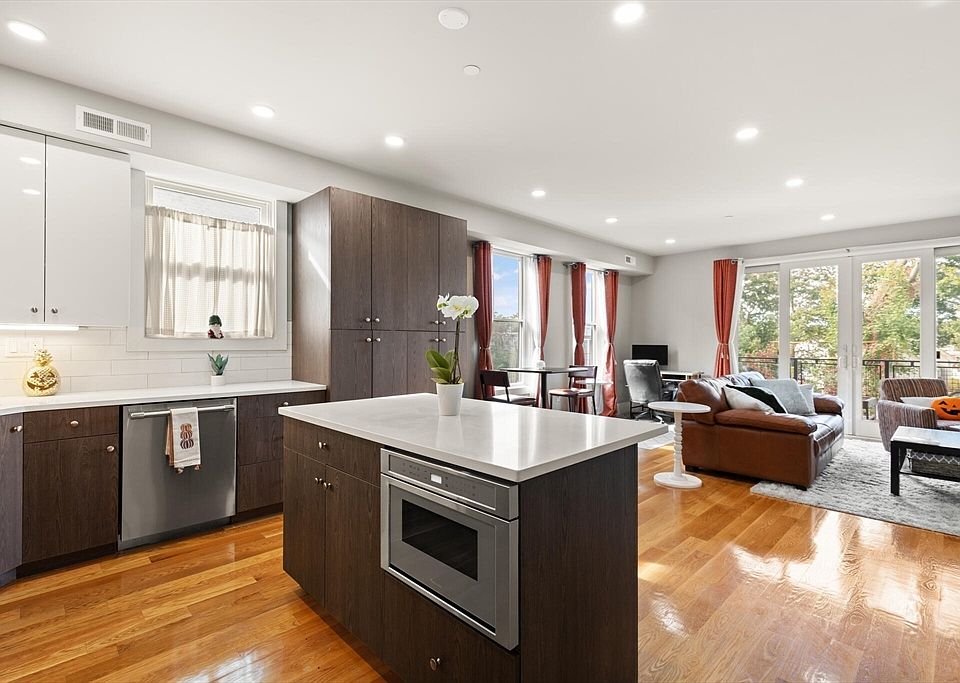 Welcome to 34 Dix Street, where modern luxury meets timeless design. Meticulously constructed in 2021, this second-floor 2Br/2Bth unit offers both flexibility and refined living. The kitchen boasts a premium Thermador appliance package, a dream setup for culinary enthusiasts. Spa-inspired bathrooms feature custom floating vanities, wall-mounted toilets, and sleek European-style tiles and fixtures, creating a serene and sophisticated atmosphere. An open-concept layout showcases soaring ceilings, gleaming hardwood floors, and double floor-to-ceiling glass doors that flood the space with natural light and open to a private deck perfect for relaxing or entertaining. Additional highlights include in-unit laundry, generous storage, and off-street parking. While the home embraces contemporary elegance, it also preserves the charm of the Victorian era. Located just blocks from the Shawmut Red Line T Station, the vibrant Field Corner neighborhood, restaurants, shops, beach, highways and Boston!
