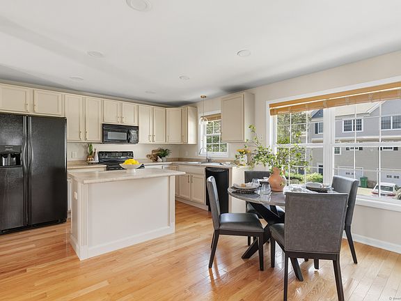 END UNIT 2 bedroom townhouse that's like brand new construction! High quality unit is bursting with light and a host of renovations to fit your lifestyle. Entire home freshly painted throughout. All new trendy light fixtures. Enter through the lower level to a perfect mudroom/foyer area for coats, bags and shoes. Opening into the sun drenched great room with hardwood floors, which can be used as a flex space to best suit your needs. The open-concept with eat-in kitchen with sun drenched dining space, center island with seating, modern cabinetry, pantry and powder room. Gleaming hardwood flooring stretches through the entire level into the 2nd floor with brand new hardwood flooring. Recessed lighting, crown molding, chair rails, picture rails, panel molding, and stately columns. The back deck is accessible off the living room and features new trex decking and handrails. Upstairs leads to a primary bedroom with vaulted ceilings and attached full bathroom with double sinks. New water heater. This home is equipped with central heat, central air and attached garage.