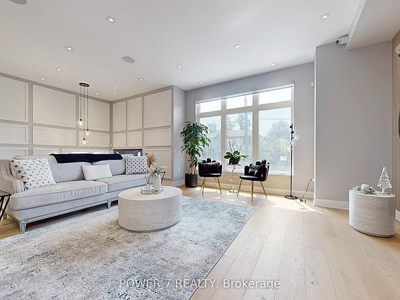Exceptional Designer Home in Clanton Park | 4+1 Bedrooms | Chef's Kitchen | Finished Basement. Discover unparalleled luxury and meticulous design in the heart of Clanton Park. This stunning 4-bedroom home, plus a dedicated main-floor designer den/office, offers an elevated lifestyle from top to bottom. The main level impresses with 10' ceilings and an expansive open-concept layout. A sun-filled den with a soaring 14' ceiling and skylight creates a dramatic yet welcoming atmosphere. The true centerpiece is the chef's kitchen, equipped with top-of-the-line built-in appliances, ample custom storage, and exquisite finishes-perfect for both daily life and entertaining. Ascend to the upper level, featuring spacious bedrooms and a serene primary retreat. The primary suite boasts a luxurious ensuite bathroom, a massive walk-in closet with custom organizers and a skylight, and a private balcony. Three additional well-proportioned bedrooms complete this level. The exceptional walk-up, finished basement is an entertainer's dream with 11' ceilings, a second high-end kitchen, a full bathroom, and a large recreation space. Thoughtful upgrades include heated floors in all bathrooms and the laundry room, a whole-home sound system, and Wi-Fi- controlled window coverings. Security and peace of mind are paramount, with smash-proof film on all ground-level windows/doors and a comprehensive security camera system (8 exterior, 5 interior).