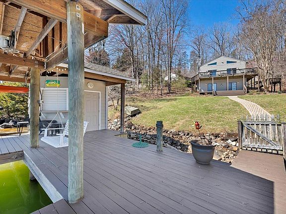 A private, move-in ready, 1.35 acre WATERFRONT HOME at Smith Mountain Lake! This 3 bedroom, 3 bathroom home is sold fully FURNISHED (minus one cabinet). VERY gentle slope, large 1-slip boat dock, paved walkway to the waterfront. And DEEP water! 12 feet, 10 inch water depth at the dock. In popular Union Hall, and in a GREAT neighborhood, this home's waterfront is on a wide channel with great lake views, and just off the main channel. Be sure to bring your bathing suit, as this home's waterfront is perfect for swimming, canoeing, boating, or just relaxing with a glass of wine. The sellers have owned this home for 25 years, and have taken EXCEPTIONAL care of it. BBQ grill on deck, 3 TVs, and the large double-shed structure also convey. Come tour this amazing home at Smith Mountain Lake!