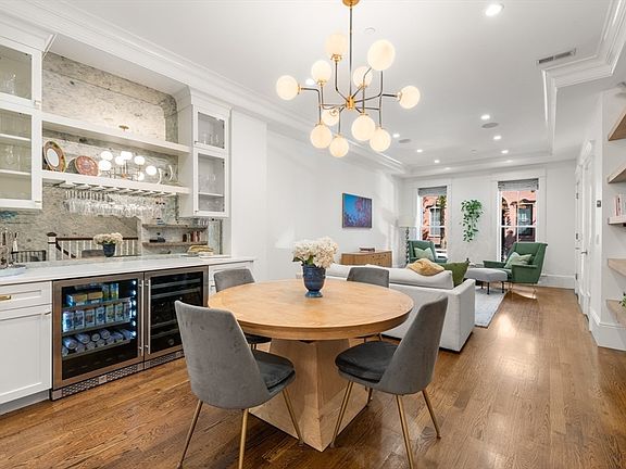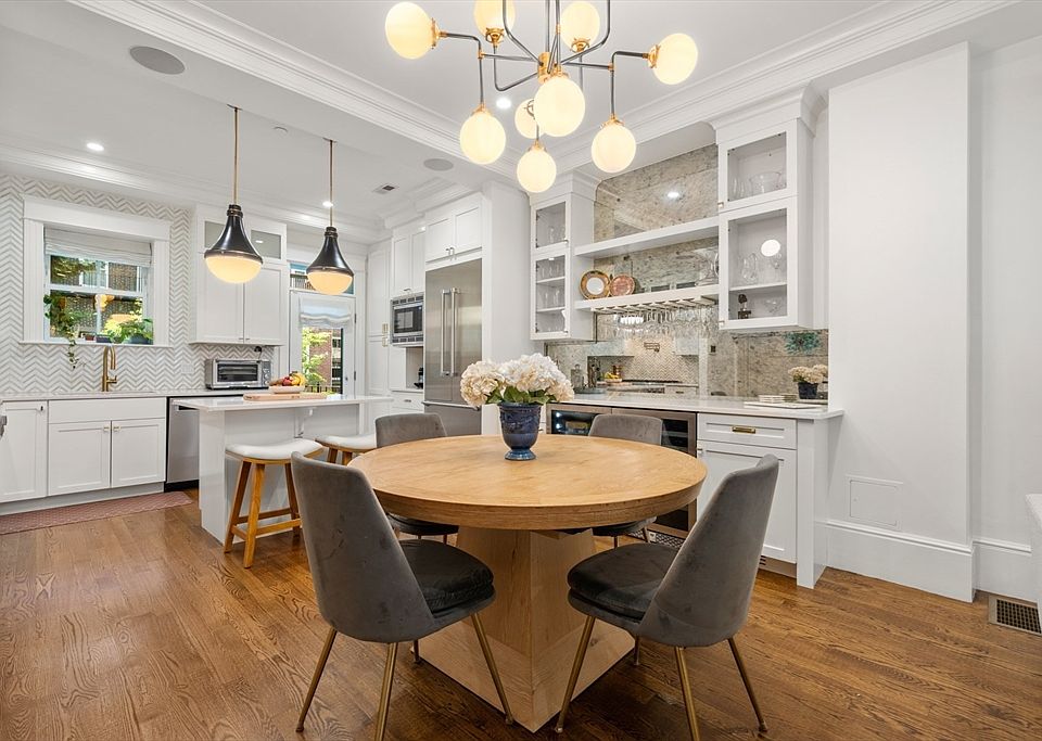 Sophisticated parlor, street & garden triplex on a tree-lined block in the coveted 8 Streets Neighborhood in the South End. Sun-splashed parlor level boasts soaring ceilings, oversized bow front windows, dining area, custom marble bar, half bath, coat closet & direct access to private rear deck plumbed with gas overlooking the private patio. Chef’s kitchen with Thermador appliances, gas cooking and center island offers counter seating. Street-level entrance includes mudroom plus 2 bedrooms with en-suite baths, including king-sized primary with double sink vanity & glass-enclosed step-in shower w/rain shower head. Garden level features 3rd en-suite bedroom, 3rd bath, 2nd living area with gas fireplace, kitchenette & direct walkout to bluestone patio & landscaped yard. Less than 1 block to garage parking. Live in the middle of it all on the famed Restaurant Row as well as steps to playgrounds and dog parks. Ideal location for those who work in the Financial District, Back Bay or Seaport