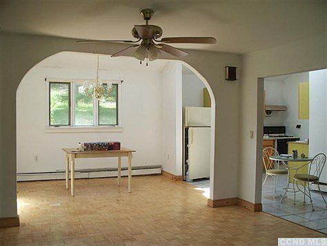 This home has over 1600 sq ft of space and sits on 4.75 acres located on a quiet country road. The interior is recently remodeled which includes a brand new kitchen cabinets and appliances, wood flooring throughout the house, full bathroom totally redone including the half bath that also has laundry hookups and new washer and dryer .There are 3 bedrooms, 1.5 baths, cathedral ceiling in the dining room and kitchen, family room with fireplace. There is also a detached two car garage with workshop and carport. Additional buildings in the rear, the closest to the house is unsafe, Do Not Enter. Property is being sold AS IS.