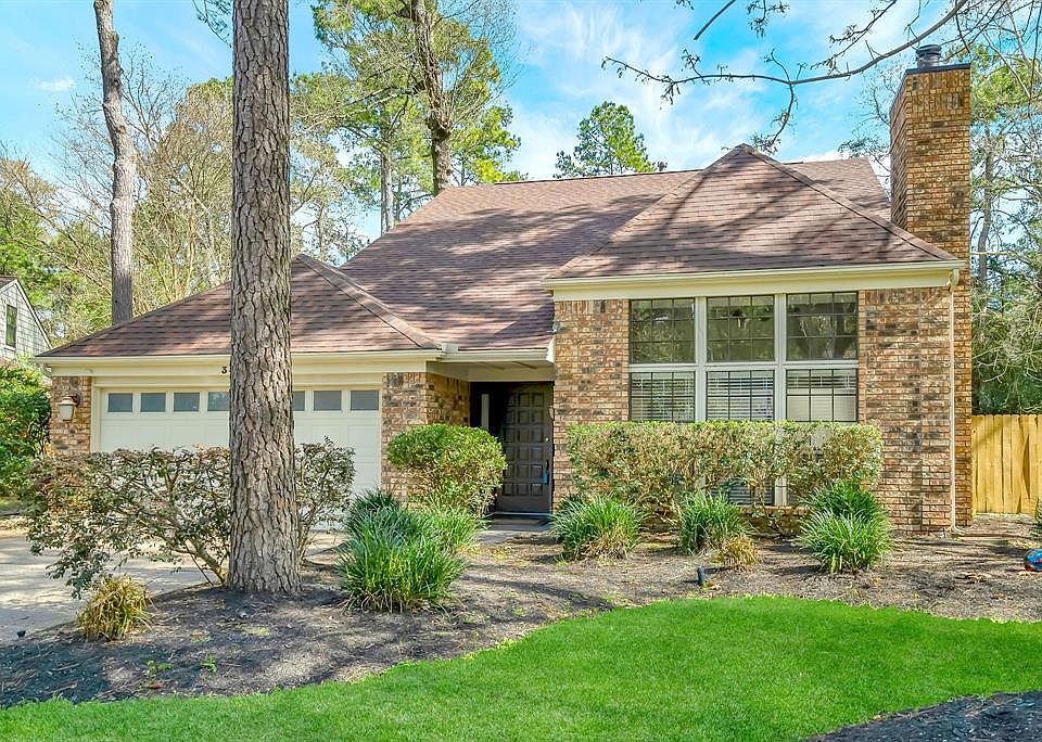NEW ROOF INSTALLED October 2018!! Updated Pulte home in excellent central Woodlands location near schools and shopping. Oversized lot with large deck for entertaining. Nice floor plan w/2 living areas, formal dining room, open kitchen and 3 bedrooms. Features include fresh interior paint throughout, wood staircase, soaring ceilings, brick fireplace, granite counters in all wet areas, new subway tile just installed in kitchen & master bath, custom shower surround being installed in master bath on February 11th. Upgraded electric fixtures/fans & stainless/black appliances. Fresh landscape front & back. A must see!