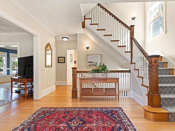 Incredible sun-filled home has beautiful details inside and out! Sought after location close to TOWN, TRAIN, SCHOOLS, LIBRARY and MIDDLESEX FELLS. Coveted WalkScore of "Very walkable". Gracious front porch, high ceilings, bullseye molding, gorgeous wood floors and lovely details to please the discerning buyer looking to be close to everything. Move right in. This 5 bedroom home offers space for all your needs and a bathroom on every level. Looking for a primary suite? Use the whole 3rd floor! Well maintained and thoughtfully improved: repainted exterior (2023), added ductless mini-splits (multiple years), new hot water heater, insulated third floor, smart thermostats and switches, new basement carpet and stair runner, replaced ceiling fans, all windows were replaced by previous owners. Lots of storage space. Back door from kitchen leads to secluded patio with climbing hydrangeas. Less than 9 miles to Boston. Convenient to 93, 128, 2 and 3, or take advantage of the Commuter Rai