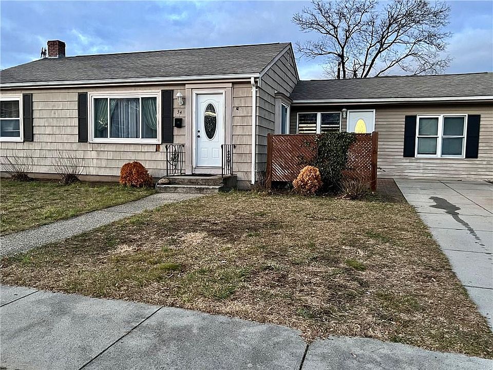 Welcome home to a charming single-level home nestled in the heart of Cranston's Eden Park Area Within the New Garden City Elementary school zone. This well maintained 3-bedroom, 2-bathroom home offers the perfect blend of classic character and modern updates, making it a true gem in a desirable neighborhood. The vaulted ceilings make this a unique grander space than you will find in most ranches. The Home theater /movie room is ready for endless entertaining while the spacious dining room provides ample room for large gatherings and more entertaining of your guests, boasting plenty of natural light. The large kitchen is fully equipped with new stainless steel appliances, ample counter space with a over sized butcher block island over looking a eat in dining area. The new slider, leads you to the new deck where you will find a fully fenced yard. The Fence has been completely replaced, the hot water heater is new. The lower lever is completely finished adding more space and value. This home has much to offer !