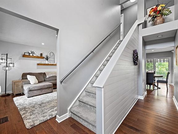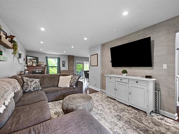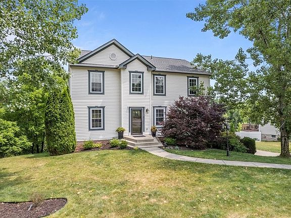 A mixture of elegance and charm! Welcome home to 34 Giant Oak Drive located in the sought after neighborhood of Whispering Pines Estates. This beautifully updated 4 bedroom 2.5 bath home is nestled on a half acre with a private backyard view . This home is LOADED WITH FEATURES & showcases a gorgeous kitchen , custom cabinets, large open kitchen/living/breakfast area layout, huge Island, quartz countertops, wine chiller, SS appliances, beautiful flooring, main floor office/dining/or bonus room, 1st floor laundry, recessed lighting, & gas fireplace. The upper level boasts a large master bedroom with ensuite, garden tub, two walk-in closets, newer carpeting, and 3 additional spacious bedrooms. This amazing home also features an updated finished basement, newer roof, newer front windows, new epoxy garage flooring, a large composite deck great for entertaining, and much more. This home is an absolute must see and minutes from Cranberry Twp, shopping, parks, and restaurants.