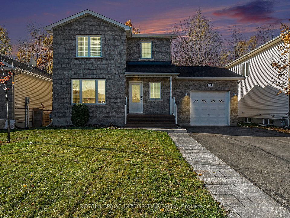 Welcome to 34 Giroux Street, a beautifully updated and bright family home nestled in the growing community of Limoges. This spacious property offers 3+1 bedrooms and 3.5 bathrooms, perfect for families seeking comfort and modern convenience. The kitchen features a gas stove, ample cabinetry, and generous counter space, flowing seamlessly into the dining area that opens onto a large deck and gazebo overlooking the above-ground pool-ideal for entertaining or relaxing in your fully fenced backyard with no rear neighbours. The main floor boasts hardwood flooring throughout, and the home is completely carpet-free for a clean, modern feel. The finished basement provides additional living space with a bedroom and a full bathroom. Numerous updates ensure peace of mind, including roof and deck (2020), finished basement and added three-piece bathroom (2020), ensuite with walk-in shower (2020), furnace (2022), and pool heater and liner (2024). Located just minutes from parks, schools, shopping, and quick highway access, this home combines small-town charm with everyday convenience. Book your showing today!