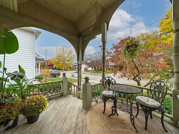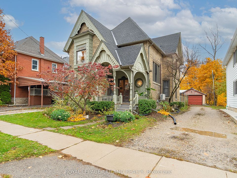 This beautifully restored Victorian home offers 2,130 sq. ft. of finished space filled with warmth, character, and original craftsmanship. This 4 bedroom, 3 bathroom home, designed and built by J.Z Long, a founding member of the Ontario Association of Architects, in 1892, is located near the desirable Court House district and blends historic charm with thoughtful updates for modern living. From the moment you arrive, the restored front door, salvaged from the original public library, sets the tone for the home's artistry. Inside, soak in the exquisite hardwood flooring, original woodworking, cathedral ceilings, and a grand staircase with restored spindles. The home is illuminated by large windows (2025), arched details and original stained glass windows. The spacious main floor features a wood-burning fireplace (WETT inspected upon purchase)with a stunning mantle, a formal dining room, a convenient powder room and a bright kitchen overlooking the backyard, perfect for entertaining and everyday comfort. Upstairs are four generous-sized bedrooms and a full bathroom with double vanities. Function of the full basement allows a second TV room, a workout space, or even storage space. Stepping outside, you can enjoy your coffee under the front covered porch or on the back deck with the fully fenced yard. This home is ideal for relaxing and enjoying the beauty of the home while being spacious enough to host gatherings. Every corner of this home showcases craftsmanship that honours the home's Victorian roots while offering modern functionality.
