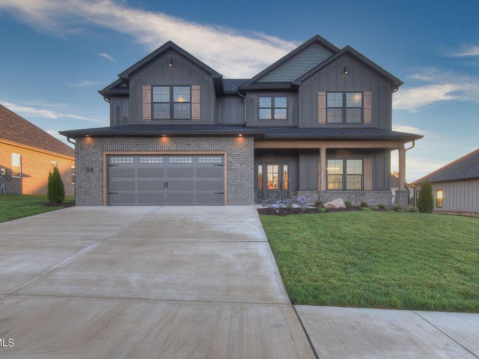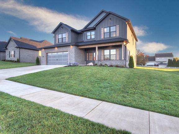 Welcome Home to Glaze Farm and this stunning new construction home offering 4 Bedrooms, 3.5 baths with TWO primary suites- one on the main level and one upstairs! This open floor plan home boasts over 3,100 finished square feet with tons of upgrades including hardwood flooring throughout (NO carpet!), tons of trim work with crown molding, tray ceilings, custom fireplace, and accent walls. You will be WOW'd the moment you walk in the inviting foyer that boasts an abundance of hardwood flooring and is open to the formal dining room featuring craftsman wainscoting trim. The oversized 2 story family room is open to the 2nd floor and boasts an abundance of windows, brick natural gas fireplace and access to the covered back patio. The stunning kitchen offers white shaker style cabinetry (soft close doors and drawers), quartz counter tops, tiled backsplash, whirlpool appliaces (gas cooktop, wall oven/microwave), cabinetry downdraft, and bar overlooking the breakfast nook and family room. The main level primary suite showcases an accent wall, dual vanity sinks, 5' custom tile shower, soaker tub and large walk in closet with laminate shelving. Upstairs you will find a 2nd primary suite with dual vanity sinks, custom tile shower, and walk in closet. The den upstairs is perfect for a playroom, office or TV room. 2 additional bedrooms with plenty of closet space and an additional full bathroom and laundry room complete the home. Relax in the evenings on the covered back patio overlooking the large backyard and walking trail. Natural gas availability- HVAC, tankless water heater, gas cooktop and fireplace. This home is loaded with upgrades throughout!! Glaze Farm is a brand new upscale neighborhood conveniently located in Johnson City near Boone Lake, shopping, schools and restaurants. Zoned for Johnson City City Schools (Lake Ridge Elementary!) featuring large lots and walking trails. All information herein deemed reliable but subject to buyer's verification. Taxes not yet assessed.
