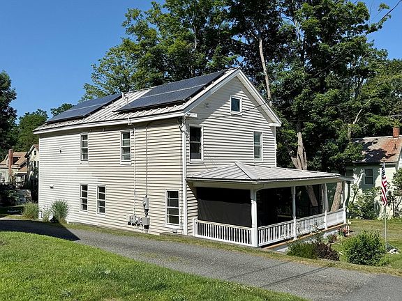 It's Porch Season! Ready to move to Shelburne Falls? Check this one out and all that goes with it! Village living and the work's all done - simply settle In and enjoy! These owners thought of everything! From the front porch with mosquito netting, to the deck overlooking your back yard, from the standing seam metal roof and owned solar panels to central AC, from modern kitchen and baths to many custom built-ins, the list goes on! All this just a couple blocks from bustling downtown Shelburne Falls on a dead end street. Terrific main bedroom suite includes full bath with separate shower and tub, double sinks, along with full laundry - there's even a built in ironing board - so handy! Vinyl siding means no painting chores! There's room in the basement for shop space along with finished area in the attic for a secret hideaway or storage. Hurry to catch this great opportunity to live in town!