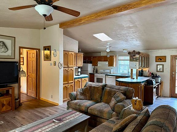 Hidden in the tall pines on 5.65 acres at the end of a cul-de-sac, this is the ultimate family retreat, almost like having two houses in one. The original house is a 1995 manufactured home with two bedrooms, each with its own bathroom. The large addition built in 2018 has a 28x28 primary bedroom suite complete with wood stove, kitchenette, two bathrooms, a screened patio, and a spacious office with a fireplace. Outbuildings include a shipping container, workshop and greenhouse. A friendly and helpful community, Timberlake Ranch offers access to private hiking trails and Ramah Lake. HOA-maintained roads and dues of only $230 per year. Only 2.5 hours from Albuquerque but like another world--with tall pines, clean air, cool temps and crisp nights. Cash only, sold furnished. Schedule a visit!