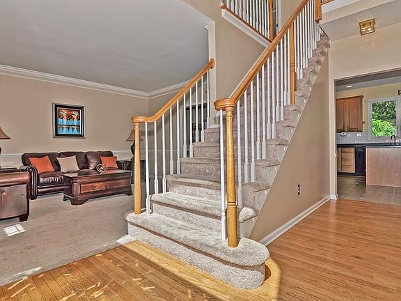 SHREWSBURY HUNT Gorgeous 4 bdr brick-front colonial with soaring 2-story foyer and Palladium window. Spacious kitchen with center island opens onto a sunken family room w/cathedraled ceiling and gas fireplace. Front to back living room and dining room, plus 1st floor study or office! Lovely egress from dinette area opens to a 24x24 rear deck, overlooking a lush level lot. Master bedroom suite with walk in closet and large master bath with whirlpool tub. Beautifully finished entertainment room and hobby room in basement! Freshly painted throughout in warm colors w/gleaming crown mouldings. Large laundry room on main level, closets galore, two car garage, central cooling, irrigation system, electric dog fence and large deck on level lot abutting conservation land offering wooded privacy! Short distance to train station and major highways, shopping and medical facilities. This won't last! Showings start at Open House on Sunday, Sept 8, 2013 2:00 pm - 4:00pm.