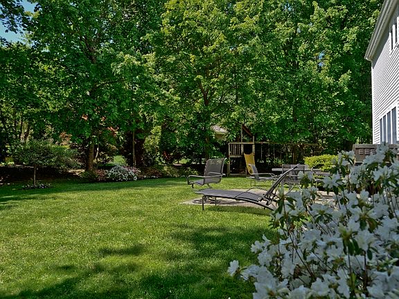 Beautifully nestled at the end of a private way, this handsome ten room, two and one-half bathroom residence, with a contemporary flair, has over 4,100 square feet of living space. The elegant two-story foyer is a fitting introduction to the main level which features an open kitchen/family room with sliding glass doors leading to a magnificent private yard. There are four bedrooms including a splendid master bedroom with a bathroom and walk-in closet. Also offered are two fireplaces, a third floor with potential for a fifth bedroom, and a lower level playroom (41' x 24') which is framed and ready to be finished. There is a two-car direct-entry garage. This property is in the Heath Elementary School district.