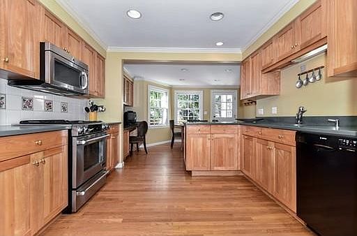 This Ideal 4 bed 2.5 bath center entrance Colonial sits on a wonderful dead end street in a spectacular location right outside of Newton Centre. The renovated eat-in- kitchen is perfect for entertaining as it opens beautifully into a large FR w/direct access to the patio & private back yard. Abundant counter space and cabinetry for storage make this kitchen every cook's dream. Directly off the kitchen is a DR w/ built in corner cupboard which gives the room a traditional feel. The LR is warm & inviting. It has a working FP and a French door that can be closed for privacy. There is a half bath located in the front hallway for convenience. The 2nd floor has 3 good bedrooms and a full family bath w/tub at the top of the stairs. A sunny master suite w/ views to the back yard makes up the 4th BR. The ceiling is vaulted & the Master Bath has a full shower & double vanity. Although primarily unfinished, the basement has 2 rooms that can be used for storage. The perfect home for todays family!