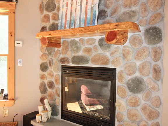 Stone gas fireplaceBreakfast barWooded viewsAbundant natural lightWelcoming entry porchDining areaOutdoor hot tub