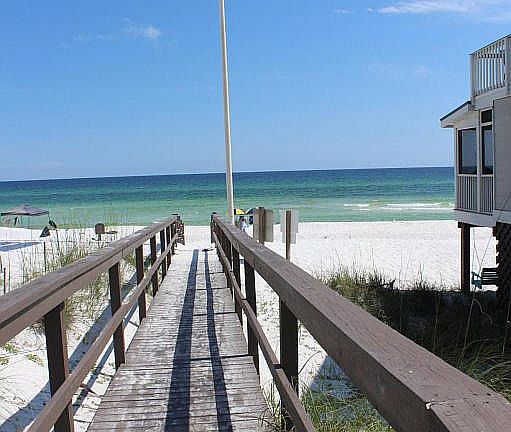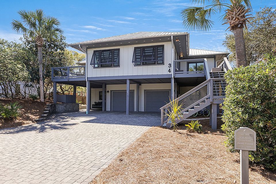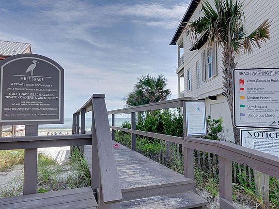 Great location, south of 30A in the popular Grayton Beach community of Gulf Trace, just steps to the neighborhood deeded beach access and sugar white sand and emerald green waters of the Gulf. Seller is highly motivated and this 5 Bedroom 3 Bath home with a private lock out downstairs is ready for a new owner. A perfect rental property or a great opportunity to have your own piece of paradise so close to the beach. A large great room with vaulted ceilings, kitchen, dining, 3 bedrooms and 2 baths make up the main level of the house. Off the great room is a separate sitting room that opens to a large deck, that is also accessible from the master bedroom. The downstairs lockout features 2 bedrooms, a full bath, kitchen and a small den with a private entrance. Play in the 12 x 24 pool orlounge on the pool deck in the shade of the wooded backyard. Park your car in the 2 car garage out of the hot summer sun.