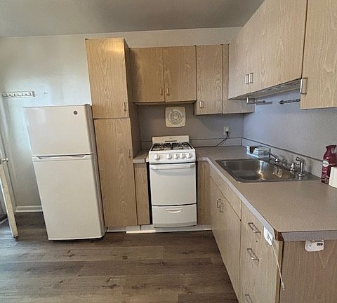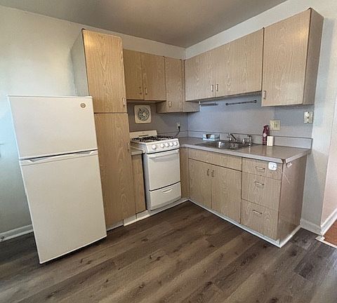 The kitchen features a gas stove and newer appliances, perfect for home cooking. Both bedrooms are generously sized, offering ample closet space. Additional perks include off-street parking and easy access to nearby shops, restaurants, and major commuter routes.