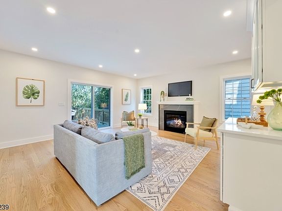 INTRODUCING 34 HIGHLAND AVE! Sparkling new, 6-bedroom, 4 and a half-bath stunner close to town & train in Maplewood's coveted, tree-lined Midland Park neighborhood. Gorgeous inky-blue wood siding & graceful bluestone walkway invite you inside, where sun-filled rooms, oak flooring & modern-meets-classic design instantly impress. Spacious, sunlit Living Room flows into Gourmet Chef's Kitchen boasting modern shaker cabinetry, crisp quartz countertops, Center Island w/ seating & high-end 6-burner stove. Gorgeous Dining Room is ready for formal dinners & everyday meals with modern wallpaper, millwork & stunning chandelier. Glass doors in Family Room open onto expansive Deck for amazing indoor/outdoor flow. On colder nights, curl up next to gas fireplace w/ black marble surround & savor a drink from built-in Bar. Mudroom w/ patterned tile flooring & cubbies/bench/coat hooks opens to lovely Powder Room, Custom Storage Room/Pantry & Deck/Backyard, ideal for wrangling muddy boots or pet supplies. Finished Lower Level has ample space for work/play, Laundry Room, more Storage, Full Bath w/ large Shower. Upstairs, luxurious Primary Suite wows w/ wallpapered accent wall, 2 Custom Walk-In Closets. Savor long soaks or steamy showers in En-Suite's outstanding, glass-enclosed Wet Room. Down the hall, find 3 more bedrooms w/ Custom Closets, Full Bath w/ contemporary finishes. 2 more Bedrooms, Full Hall Bath on 3rd level. 2-car detached Garage. This total reno is a true must see!