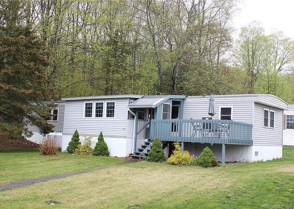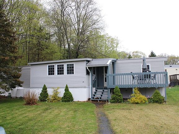 Well cared for 2 bedroom with 2 full bathroom mobile home with water views at beautiful Pocotopaug Lake Open space with combination of living room and dinning room, extra bonus room as sun room, 2 decks and good sized shed Located on cul-de-sac with 2 parking spots,also features newer windows, washer & dryer included(rare for these home 1200+ square feet of very nice living space