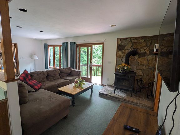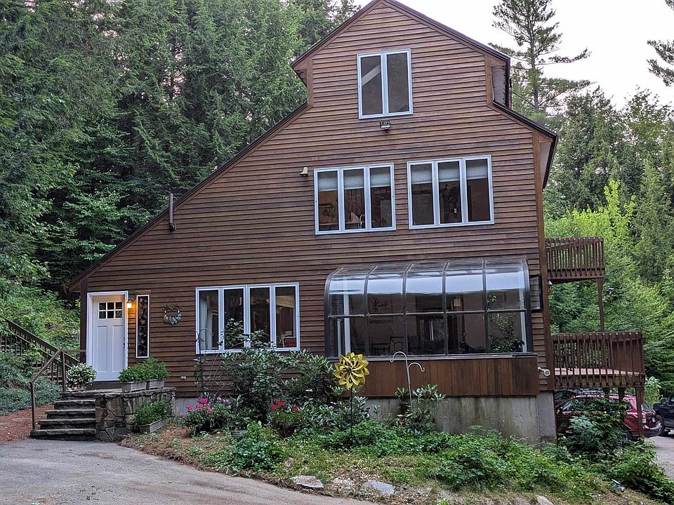 So many wonderful details to this home, along with 553' of beautiful Leadmine Brook in your backyard. Six plus garages, two w/room for three cars under the home, four bays on the back area of the home, which is enormous for car enthusiasts or large toys. Large storage area above, potentially suitable for an in-law apartment. This area features new fruit trees, a fenced-in area for dogs, a fire pit, and a gazebo with electricity, where, in the fall and winter, a potential mountain view. The second lot is empty, an excellent area for walks. The main entrance into the home (new windows) has a closet to store jackets, boots, and gear. The kitchen opens to a large living & dining room. A solarium off the dining area (hot tub does not work). An excellent place to watch the snow and rainfall. Upon entering the deck, you return to the living room. The seller uses the next room as a "library". It would make a fantastic main-floor bedroom. A large pantry is off the main floor, along with a full bath. Upstairs, you find a large area great for a family room, the master bedroom (large walk-in closet), another bedroom, a laundry area, plus a loft, making this a 2.5-story home. Beautiful windows throughout home. The Androscoggin River, the Appalachian Trail, and Gorham, offering shopping and entertainment. Shelburne is known for its excellent trails & bike rides, just 20 minutes from Sunday River and Wild Cat. Jackson 32 min. Includes a large recreational carport w/ electricity.