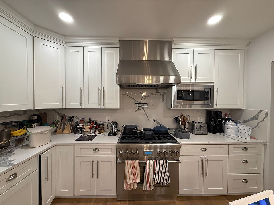 NO FEE AND 1/2 MONTH RENT FREE. Experience refined living in this multi-generational living or one spacious family condo near the Longwood Medical Area, top schools, train and downtown.The main floor features an open-concept layout with a chef's kitchen boasting Thermador appliances, quartz countertops, a grand island, & a walk-in pantry. The living room with gas fireplace flows seamlessly into the formal dining area, ideal for entertaining. The primary suite includes a walk-in closet & spa-inspired bath with double vanity and glass-enclosed shower. A second bedroom with a private bath & a home office complete this level. Connected by an interior staircase, the lower level offers a kitchenette, two bedrooms, two full baths, living area and a 2nd laundry area perfect for guests or extended family. A private patio with a built-in outdoor kitchen enhances this home's exceptional appeal. A rare opportunity to experience a luxurious, flexible home in one of Brookline's most desirable location! Hardwood floor, AC & parking