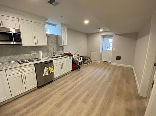 New! New! New! Completely renovated garden level one bedroom with private entrance in excellent location. All utilities (gas, electric, cable and internet) included!! New modern kitchenette with shaker style white cabinets with quartz countertop and brand new stainless steel appliances. Good sized bedroom with large window. Double door closet with custom closet system. New tiled bathroom with tub and handheld shower head. New Central Air and heat with digital Ecobee thermostat. New Washer and dryer in the unit. Private patio. Can be rented short term and/or furnished.