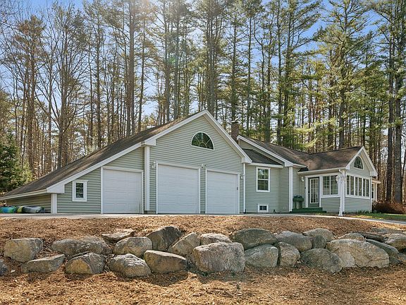This beautifully updated two-bedroom modern ranch offers peaceful living with stunning water views from most rooms. Nestled along the shores of Tripp Pond, this home features a spacious primary suite complete with a luxurious custom tile shower and separate soaking tub—your personal retreat after a long day. Enjoy the sleek appeal of luxury vinyl flooring throughout, complemented by fresh paint and new appliances that make this home truly move-in ready. The living room pellet stove keeps the home toasty in the wintertime, and the heated sunroom can be used all year to enjoy your spectacular view. Whether you're sipping coffee by the window or entertaining guests, the tranquil scenery sets the perfect backdrop. Additional comforts this home offers include beautiful natural light, mudroom with storage, whole house generator, large unfinished dry basement with workbench and optional office space, and three bay garage. All of this on the inside, let's talk about the outside! Jump from the dock and enjoy the sandy bottom and the cool waters, or use the kayaks or rowboat to explore Tripp Pond. Out of the water awaits a charming, timeless cabin in the backyard with a screened-in porch and water views. Equipped with power and plumbing and a gas heat stove, this classic Maine cabin opens the door to endless possibilities: guest quarters, an artist studio, or the ultimate game room getaway...and so much more. Don't miss the chance to own a piece of waterfront paradise!