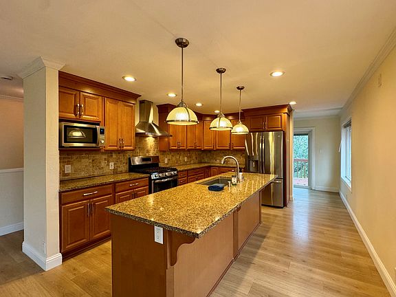 This beautifully renovated three-bedroom, two-and-a-half-bath home is nestled on a spacious lot in Circle Oaks, perfectly located between Napa and Lake Berryessa. The home features an open floor plan where the modern, remodeled kitchen seamlessly flows into the rear deck, offering stunning views of the valley below. The kitchen is equipped with stainless steel appliances, including a gas range, refrigerator, and dishwasher. Hardwood floors run throughout the living spaces, adding a touch of elegance. The large outdoor deck is perfect for entertaining or simply enjoying the serene surroundings. Additional amenities include a two-car garage, washer and dryer, and updated finishes throughout. This home offers both comfort and style in a picturesque setting. One year lease term.