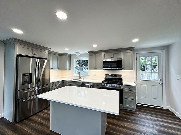 Home was remodeled down to the studs. Brand new everything - 200AMP electric; entire home plumbing; new gas service; new kitchen & bathroom; new roof; windows; siding; walls; ceilings; floors; central air; Bosch on-demand hot water and heating system; new landscaping; new patio; new driveway; new garage door & opener; All appliances - stove, fridge, dishwasher, garbage disposal, microwave, front load washer & dryer. Provisions for 2nd bathroom available.