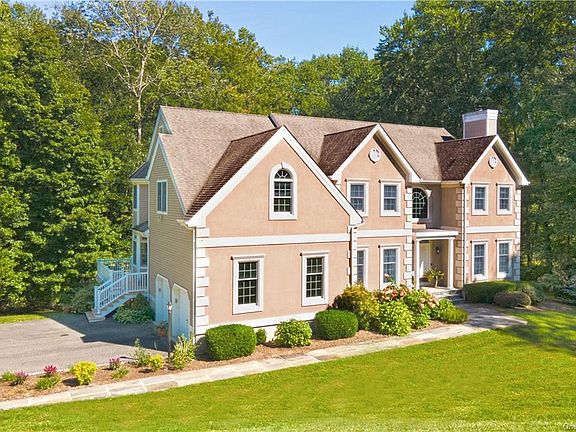 Privacy and Convenience! The best of both worlds exists at 34 Lambert Ridge in Michelle Estates, a wonderful, well-managed neighborhood within the award-winning Katonah-Lewisboro School District! Stone pillars introduce the grand approach leading to this classic center-hall colonial with front-facing living and dining rooms. In the rear, a centrally-positioned family room with wood-burning fireplace is flanked by two sets of sliding glass doors that open to an enlarged composite wrap-around deck overlooking a peaceful and private back yard. A gorgeous white gourmet kitchen, accented with today's neutral tones, is an entertainer's dream and features quartz countertops, a stylish tile backsplash and top of the line appliances. This pristine kitchen offers easy access to laundry room, garage and side deck, plus, for everyday enjoyment, there is a lovely window-wrapped, built-in banquette seating area with view of sprawling flat side yard. Office and powder room complete first level. Second level includes a primary suite designed with relaxation in mind, 3 other bedrooms, hall bath and large playroom with closets. The walk-out lower level is all about fun with a built-in bar, entertainment/recreation space, separate fully-equipped gym area and full bath plus ample room to create another bedroom. Easy living can be yours in this conveniently-located home with community sewer and water; super close to local shopping plaza and John Jay high school/middle school campus, less than 8 minutes to Katonah Village, Metro North, 684/Saw Mill Parkway and elementary school plus near picturesque towns of Bedford, Pound Ridge and North Salem. Wonderful lifestyle and very special!