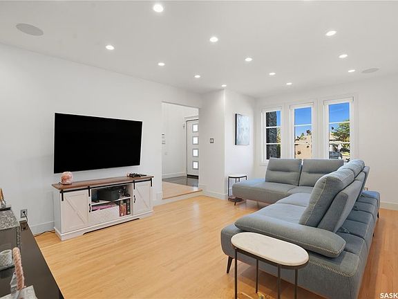 Welcome to 34 Leslie Place, a quiet bay in Regina’s desirable Albert Park. This extensively renovated home blends elegance, comfort, and functionality—ready for immediate enjoyment. The grand entryway opens to a sunken living room with a 2-way gas fireplace and white quartz surround, a central wood-tile staircase, family room, and formal dining area overlooking the backyard. Custom hardwood floors flow throughout. The kitchen features warm wood cabinetry, granite countertops, tile flooring, double stainless sinks, a fireplace, and a cozy breakfast nook. A 2-piece bath and office/den with private entrance—currently a salon—complete the main floor. Upstairs, a bonus room overlooks a crystal chandelier and highlights custom woodwork, a gas fireplace, coffered ceiling, pot lights, and built-in sound. The luxurious 5-piece bath offers double sinks, glass block accents, and a seating area. The spacious primary suite includes two private balconies, dual closets (including built-in shoe storage), and a spa-like ensuite with soaker tub, walk-in shower, and water closet. Three additional bedrooms complete the upper level. The finished basement features a soundproof entertainment room, bedroom, 3-piece bath, and laundry with sink and cabinetry. Outside, enjoy a fully landscaped corner lot with stone/stucco exterior, wood accents, custom lighting, and double drive. The PVC-fenced backyard includes a covered deck wired for sound, stone patio, and heated double garage with epoxy floors and aluminum/glass door. Value-added features: built on piles, exterior EIFS envelope, tile roofing system, natural gas BBQ hookup, central A/C, Control4 system, alarm, 200-amp panel, sewer backflow valve, HRV, hi-eff furnaces with humidifiers, and more. All drawings and improvement details available. A rare find in a prime location—call your agent today.