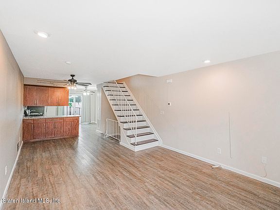 This pristine and lovely townhouse is located in prime Rossville Staten Island. Features two large bedrooms, full finished basement and 3 bathrooms. The eat-in kitchen includes stainless steel appliances, tile backsplash and granite countertop. Bright recessed lighting in living room enhances the interior, a master bedroom with half bathroom. The large finished basement has half bathroom and provides additional living space plus a finished extra room perfect for office or additional storage. The property includes a private driveway for convenient parking. Outside, you'll find a paver stone patio ideal for relaxation and entertaining along with a private yard that offers outdoor enjoyment. Located in a desirable community 'Bloomingdale Ridge' Home in close proximity to community playground, restaurants, shopping, Bloomingdale Park, PS 56. Tottenville High School and Bricktown center Charleston.