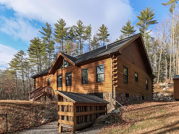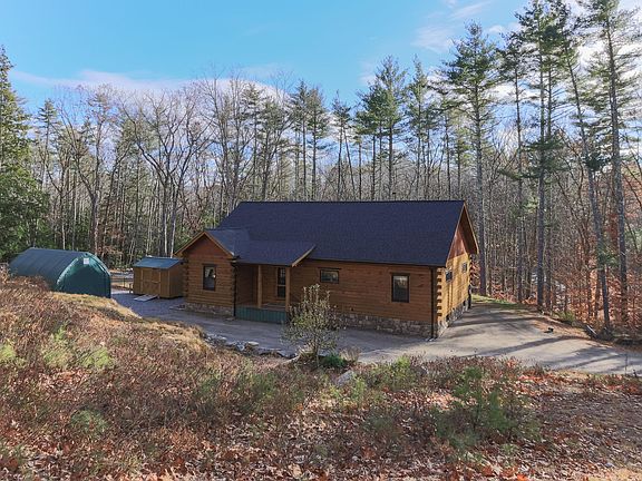 Check out this immaculate 7 yr old Log Home on 5+ acres! This home features 3 bedrooms, 2 baths, a full basement and an open, vaulted central area. The Primary Bedroom contains a full bath with custom shower and soaking tub, plus a walk-in closet. The handsome look of a Log Home flows throughout the residence, including the bedrooms. The walls are a true 8" log, with cement fiber shingles at the gable ends. The owners have also installed stone facing on the foundation exterior, just a bit of grouting remains. This home achieved Energy Star qualification and is designed to be very efficient and low maintenance. It is heated and cooled with 5 heat pump/central A/C units, and a Vermont Bun Baker woodstove with soapstone surround provides cozy heat throughout the home even on the coldest evenings. The vinyl plank floors are handsome, durable and low maintenance, with tile floors in the baths. Leathered Granite counters and stainless appliances dress the kitchen and breakfast bar island. The insulated full, walkout basement also contains a heat pump/AC unit for comfort, and could easily be finished for additional living space. The future plans for this home involved clearing space for a detached garage, and erecting a 16x28' metal garage on the property. The space is cleared and the garage kit and plans will come with the home if a Buyer wants them. CHECK OUT THE TOUR URL TO WALK THROUGH THE HOME. Don't miss a chance to view this home before it's gone, you won't be disappointed!