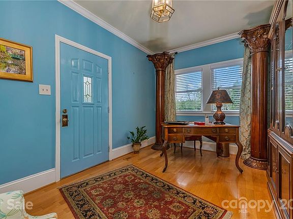Enjoy a leisurely stroll through the quaint small town of Tryon from this charming one level home. Located on one of the prettiest streets in town, it is just a short walk to the Library, Fine Arts Center, Churches and shopping. The home has retained its original charm even with tasteful upgrades that have taken place throughout the years. Crown molding, wood floors, built-ins, skylights and plantation shutters are just a few of the many features. Impressive entry foyer and spacious living room with wood floors, fireplace & built-in book shelves, open dining room with adjoining screened porch. Convenient kitchen with solid surface counters, tile backsplash and ample pantry space. Large MBR with fireplace, walk in closet and tiled en-suite bath, guest bedroom, bath and den or possible 3rd BR. All situated on a nicely landscaped lot with stone patio & walkway. Private back deck and plenty of parking space. Rear carport and parking accessed by right of way drive from Melrose Ave.