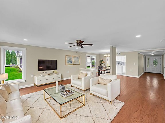 This top Quality custom renovated Heather Model is everything you could ever want. Designer Kitchen with soft close cabinets Quartz counters & SS appliance. Formal Dining room & bright spacious living room. The home features gorgeous flooring with crown molding & recessed high hats throughout. Primary bath with double sinks & shower. Guest bath with new tile & tub. New exterior doors an attic fan. Freshly painted, vinyl siding and 2 Patios, Plus a separate laundry room with brand a new washer & dryer. Plus flooring in the attic for extra storage. Plus New Gas Conversion with new gas Furnace and HVAC system. This is a must see. Make your appointment today. Leisure Knoll is a premier adult community close the famous beaches of the Jersey Shore, close to shopping. Timberland Hall features a state of the art theatre venue/meeting hall, and hosts monthly Bingo, dances and more with a fully equipped commercial kitchen. Some of the activities offered are Tennis, Pickleball,