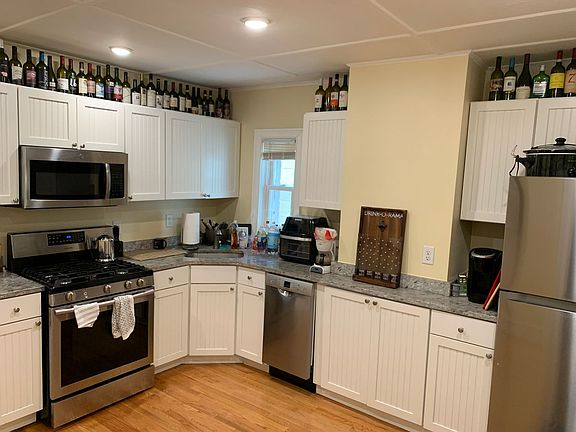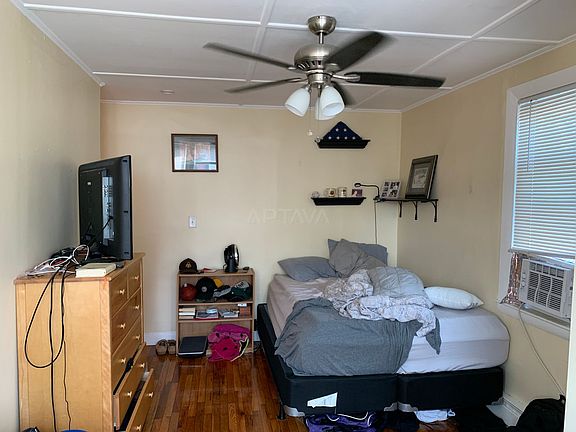 . Notable amenities include a ceiling fan, a dining room, hardwood floors, high ceilings, a living room and a modern bath. Rent includes municipal water. The modern eat-in kitchen includes a dishwasher and electric range. Available Now