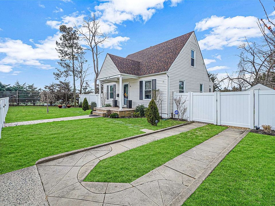 Stunning cape with potential rental income! Last house on a dead end road with the biggest fenced in yard in the area. Malverne schools! 3 levels home with a fully finished basement that has a private outside entrance. Features 3 bedrooms and 3 bathrooms. Master bedroom has it's own full bath and a walk in closet. Entire house is recently renovated and have natural gas heat. Comes with new washer, dryer and stainless steel appliances. Kitchen is beautifully finished with expensive Quartz countertops! Wait till you see this spacious fully fenced in yard! Beautiful plants, apple trees, garden area, detached garage with electric, long gated driveway, this home has it all! Don't take my words for it, come see it and come fall in love!