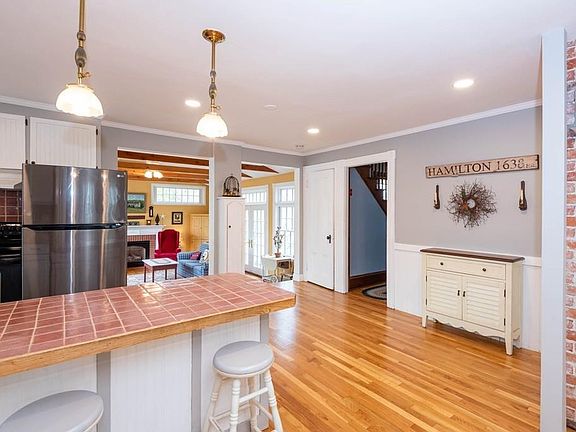 This charming and spacious home has not been offered in over 43 years and has been lovingly maintained. A perfect location sited on a large, level, corner lot situated in close proximity to Patton Park, library, commuter rail, restaurants and shops. Boasting new boiler (2020), updated 200 amp electric (2020) and open concept kitchen/dining area open to the oversized family room addition (2002) with cathedral ceiling, French door and gas fireplace; a wonderful place for family gatherings. The four-bedroom septic system offers the flexibility to use the third-floor bonus room with built-in beds as a fourth bedroom. Outside offers a wraparound farmerâs porch, garden area, and two additional decks. Come see all this lovely home has to offer. Come home to Hamilton.