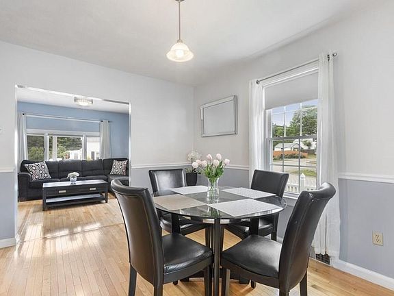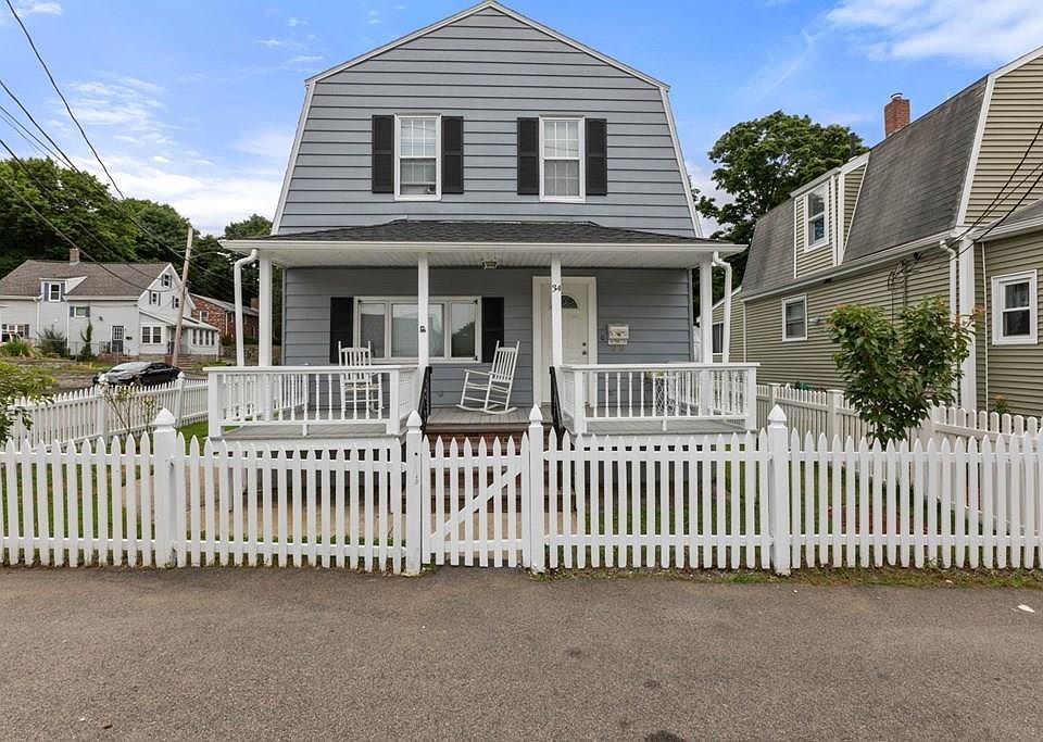 Beautiful Dutch Colonial home with gambrel roof sited on a spacious corner lot. Welcoming Farmer's Porch and spacious entry way. Open floor plan. Living room flows into dining room and updated kitchen showcasing white cabinets, gas stove and granite counters. Unique design features including exposed beams and brick, skylights, vaulted ceiling in 2nd flr bath and 8+ foot ceilings on both the 1st and 2nd levels. 3 bedrooms, 2 full baths with laundry located on first floor. Bonus room in basement is currently being used as a 4th bedroom. Slider leading to large rear deck and your own private backyard oasis. This home has it all... 30-year architectural roof (2015), replacement windows throughout, hardwood floors, central a/c, detached garage, parking and even a white picket fence! Close to shopping - Dedham Square and Legacy Place, schools, park, major highways and the Readville and Endicott train stops. * Open House by scheduled showings Saturday, August 15th, 11:00am-1:00pm *