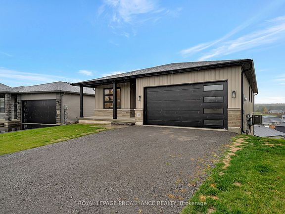 Welcome to this beautifully designed new bungalow, perfectly positioned in a quiet neighbourhood just minutes from Frankford. Thoughtfully crafted with modern finishes and open-concept living, this home offers 3 spacious bedrooms plus a den/office, ideal for today's lifestyles. The bright, contemporary kitchen features abundant cabinetry, quartz countertops, and a large island, flowing seamlessly into the dining area and great room-perfect for entertaining or family gatherings. Step out from the great room onto the expansive deck with a BBQ outlet, where you can enjoy panoramic views of the subdivision and the rolling hills leading toward the Trent-Severn Waterway. The primary suite provides a private retreat with a walk-in glass and ceramic shower in the ensuite, while the main bathroom is stylishly appointed for guests and family alike. The home show cases laminate flooring throughout and elegant hardwood stairs, with carpet only in the lower-level bedroom for added comfort. The fully finished lower level offers excellent in-law suite potential, featuring a spacious rec room with a modern tile-surround fireplace, a wet bar complete with a fridge opening, a fourth bedroom, and a 3-piece bathroom. The walkout basement leads to a beautiful interlocking patio, creating a comfortable and independent living space for extended family or guests. Bright and airy with abundance of windows, this home combines modern craftsmanship, comfort, and stunning natural surroundings-all within easy reach of Frankford's amenities, parks, and the Trent River.