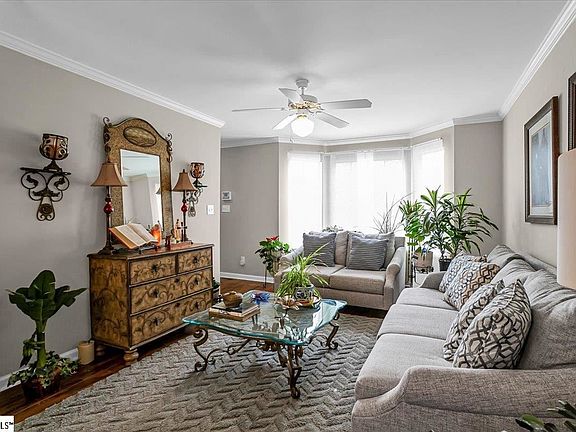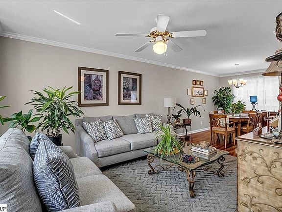 This house features 4 bedrooms and 3.5 Bathrooms. Two master bedrooms on the second floor. Formal Dining and living room. The family room has a fireplace. The kitchen has white cabinets. It has mature trees surrounding the home and a large deck for relaxing or entertaining. Storage needs are met with one storage building. It is located close to Wade Hampton Blvd and all its amenities. The house has Solar Panels with SunRun; the lease will be transferred to the new buyer. The cost is $123.36/mo.